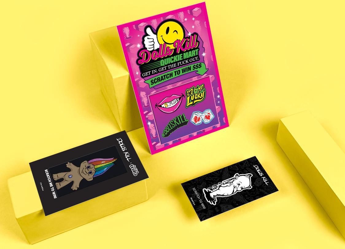Never one for the status quo, Dolls Kill created several scratch off promotions in multiple sizes using our full color reveal to launch new product lines.
